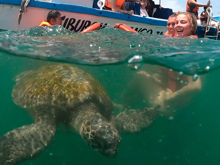 At sunrise, a small boat heads out into the open sea. The goal is to see sea turtles — but what happens feels far more intimate. The turtles emerge gently, slowly, unafraid. They glide close by, as if inviting stillness.